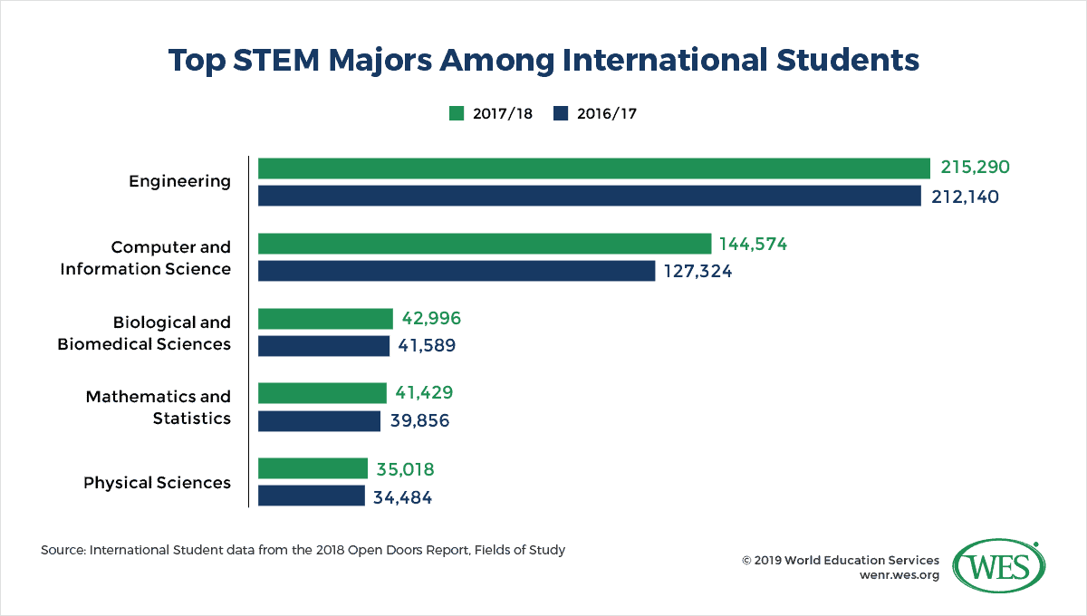 如果您是一名有兴趣在美国攻读学位的国际学生,您可能会想知道选择 STEM 类专业所具有的优势。您可能也会想知道最适合您的学习领域。为向您提供更多具体洞见,WES Advisor 研究了来自国际教育协会的门户开放报告 (Open Doors Report) 中的数据。