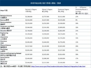 总的来说,同一行业博士比其他学位就业者工资收入高。但是不同专业的博士或不同专业的硕士横向比较的话收入也会有差距。比如,在生物科学行业内博士比硕士收入高27%。但是其他行业,比如工商行业这个差距较小,仅为8%。如果你想在工作上有所成就,选择修一个工商管理硕士也许经济收入会更加客观,这样的话某些博士说不定拿着和你差不多工资。但是如果你仅仅只是想拿一个热门专业的博士学位,建议查看一下国际留学生首选的美国50所大学。