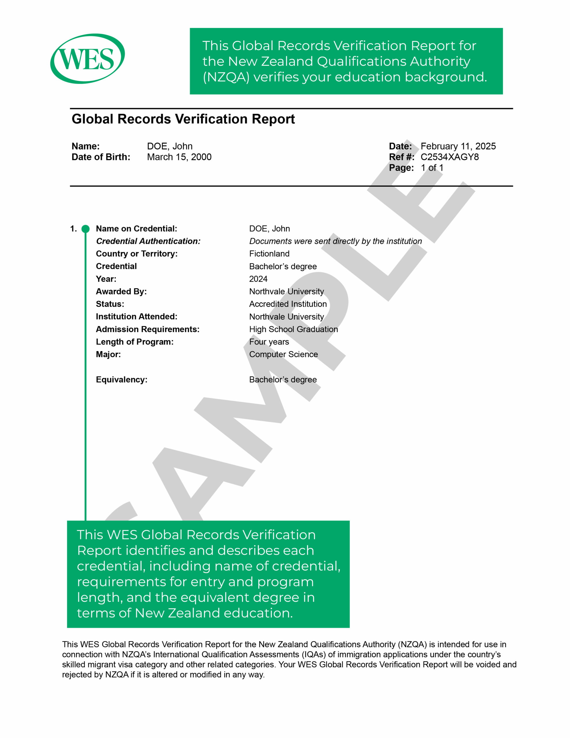 NZQA trusts a Global Records Verification Report to authenticate the academic records of internationally educated individuals.