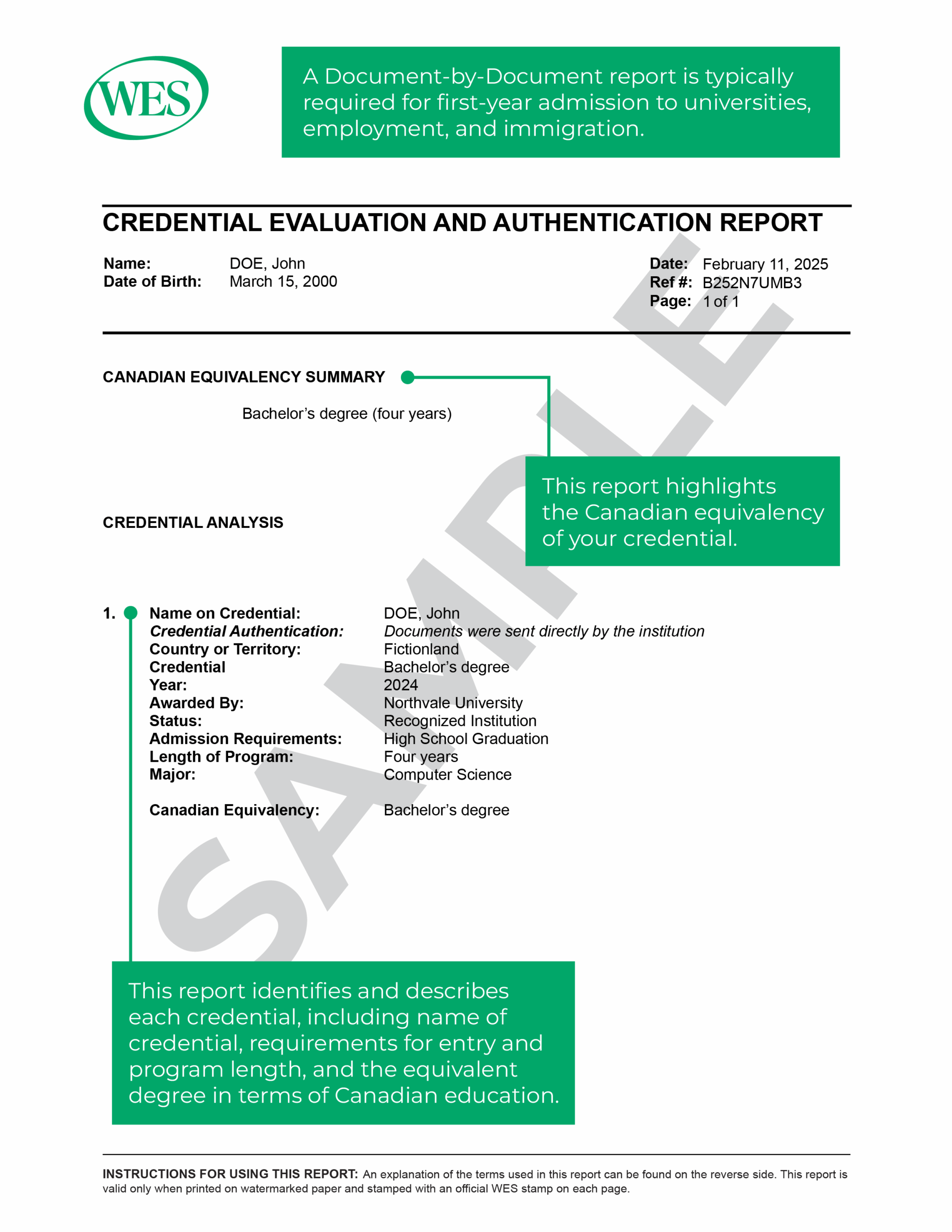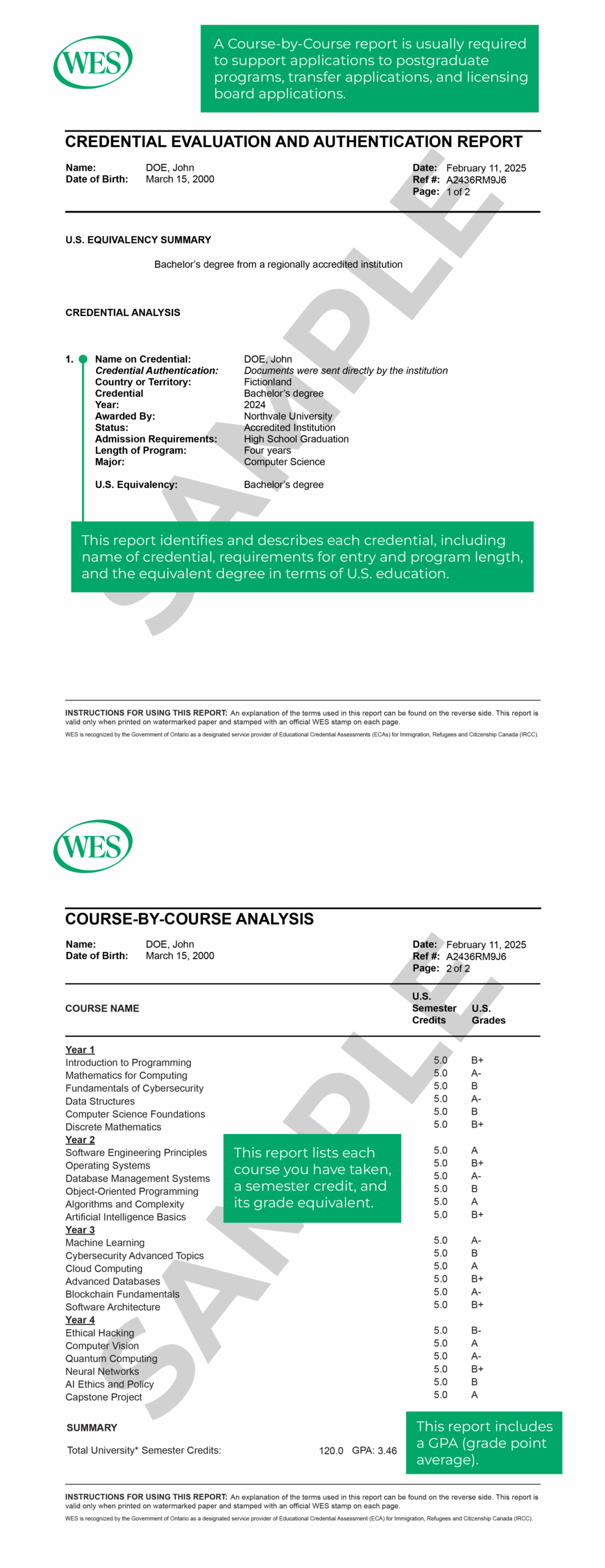 WES is designated by Immigration, Refugees and Citizenship Canada (IRCC) to provide ECAs.