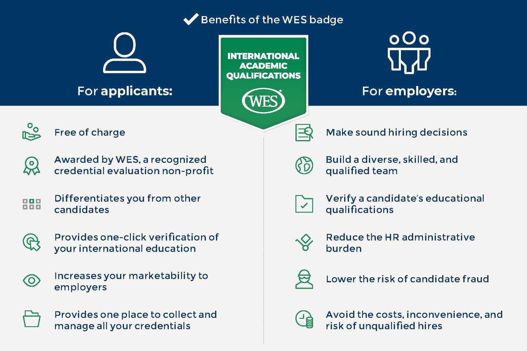 - Confirms WES has verified and evaluated your educational credentials